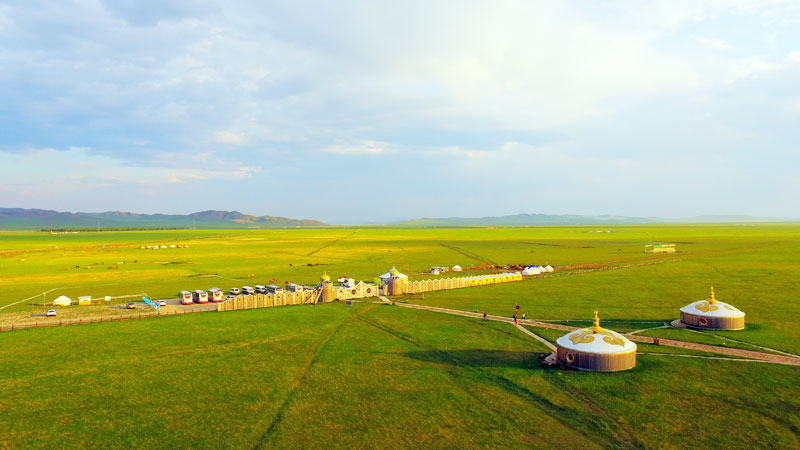 蒙古古代宫殿风格的蒙古汗城坐落于内蒙古锡林郭勒大草原最壮美的西乌珠穆沁草原腹地。这里绿草如海,畜群如云,被誉为“游牧文化之源、民族服饰之都、蒙古长调之乡、摔跤健将摇篮、北方最华丽草原”,是蒙古族风俗文化保存最完整的地区。