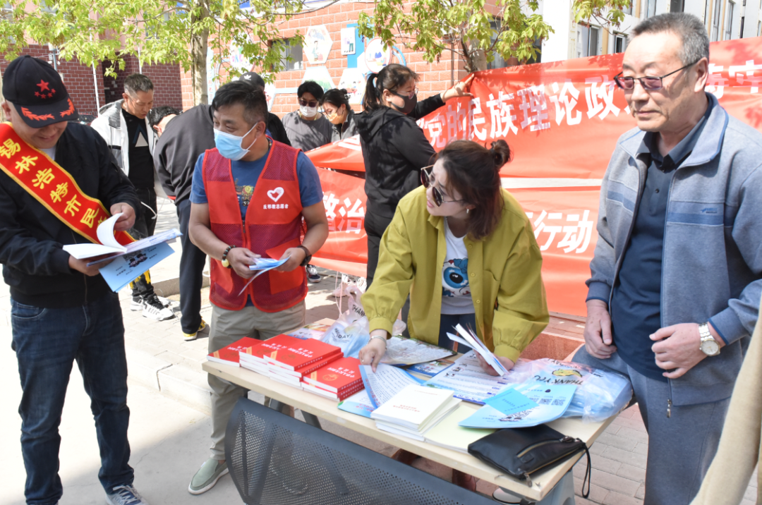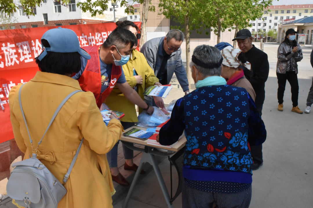 发放民族政策理论、防疫宣传资料和口罩等物品