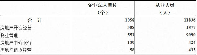 表4-11 按行业中类分组的房地产业企业法人单位数和从业人员