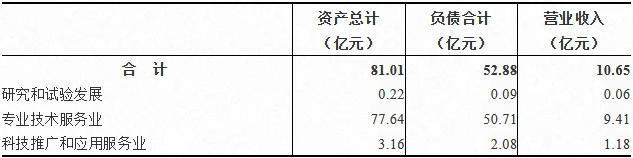2023年末,科学研究和技术服务业企业法人单位资产总计81.01亿元,比2018年末下降39.0%;负债合计52.88亿元,比2018年末下降9.6%。