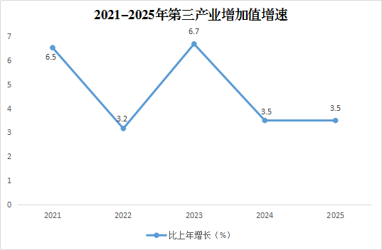 全年批发零售业增加值78.68亿元,比上年增长2.8%;交通运输业增加值88.54亿元,增长4.7%;住宿和餐饮业增加值17.01亿元,增长2.7%;金融业增加值35.29亿元,下降9.9%;房地产业增加值31.01亿元,增长3.7%;其他服务业增加值225.70亿元,增长5.6%。全年规模以上服务业企业实现营业收入106.85亿元,比上年增长1.4%。