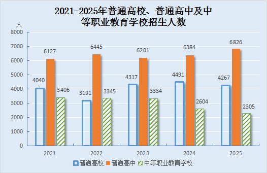 年末全盟共有普通高校1所,招生4267人,在校生12015人,毕业生3866人。中等职业教育学校6所,招生2305人,在校生7616人,毕业生2806人。普通高中18所,招生6826人,在校生19264人,毕业生6342人。初中20所,招生10474人,在校生29770人,毕业生9436人。小学58所,招生9624人,在校生62296人,毕业生10785人。幼儿园136所,在园幼儿24240人。特殊教育学校1所,招生54人,在校生210人,毕业生74人。