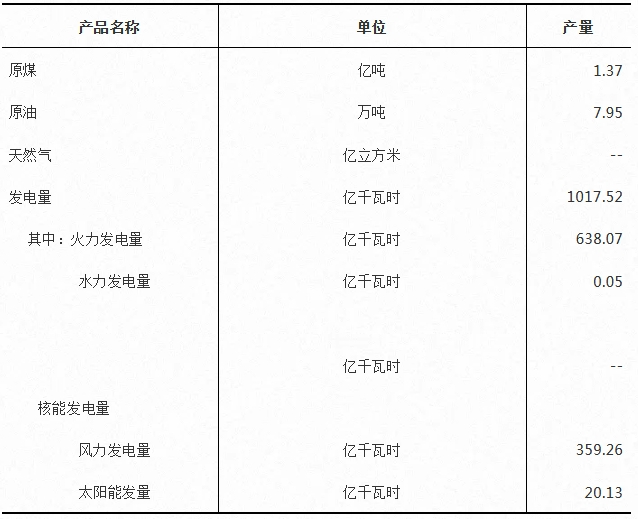 2023年,主要能源产品产量详见表3-5。