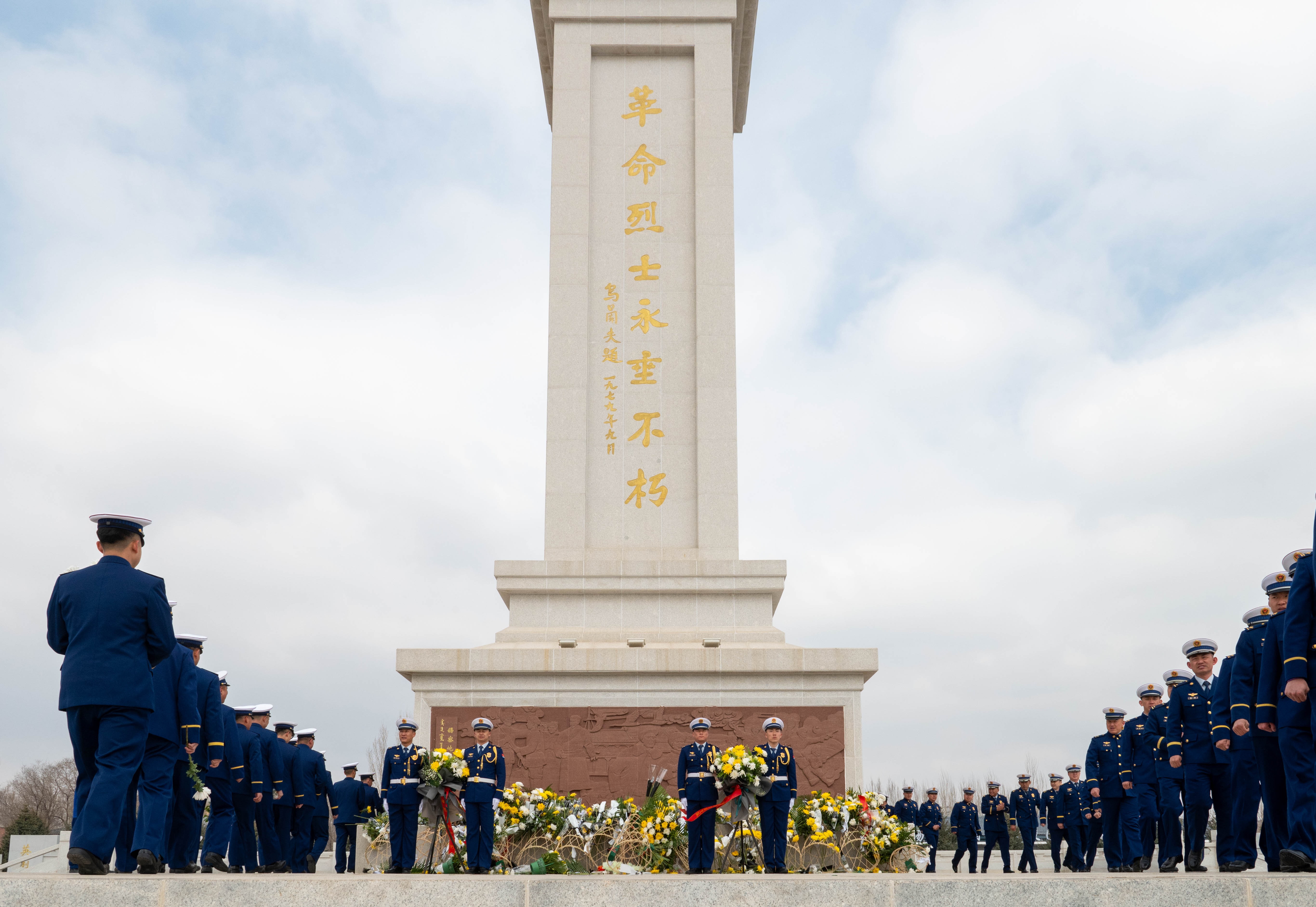 默哀毕,指战员代表缓步上前,向烈士纪念碑敬献花篮,朵朵鲜花寄托着对革命先烈的深切缅怀与崇高敬意。支队主要领导上前整理花篮缎带,进一步表达对先烈的哀思与敬仰。