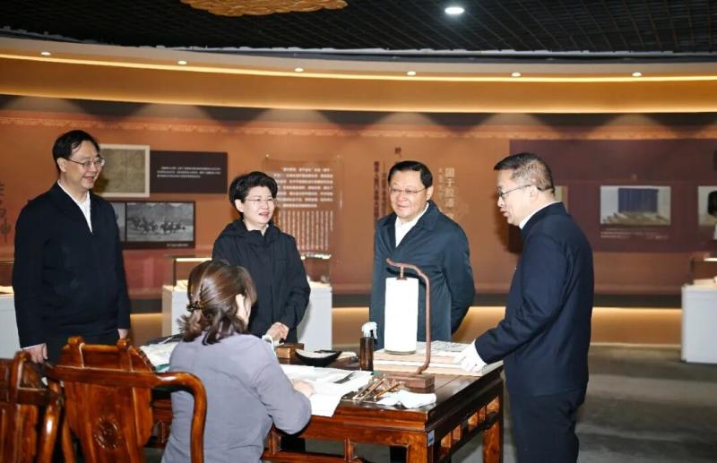 4月20日,自治区党委书记、人大常委会主任王伟中走进内蒙古图书馆,详细察看铸牢中华民族共同体意识馆藏古籍展览情况。草原云·内蒙古新闻网记者 马建兵 摄