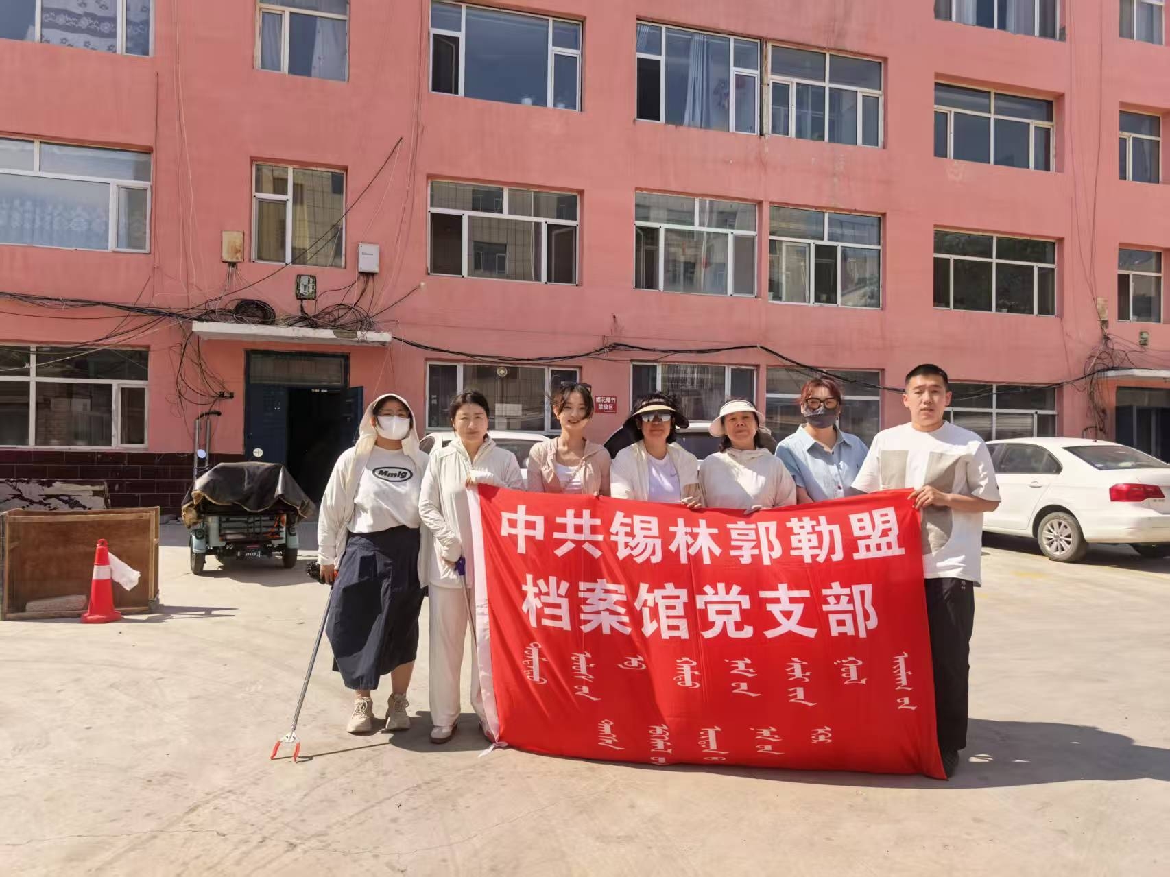 为庆祝中国共产党成立104周年,持续推动深入贯彻中央八项规定精神学习教育走深走实,进一步激发党员干部干事创业的激情与活力,锡盟档案馆组织党员干部开展形式多样的庆“七一”感党恩系列活动,通过志愿服务、参观廉政书画展、讲党课等形式,共庆党的生日,感悟初心使命,厚植爱党爱国情怀。进社区办实事,开展志愿服务。盟档案馆组织党员干部深入包联社区开展“遍访群众”主题党日活动,党员干部对包联小区内堆积的垃圾、卫生死角、路面垃圾等进行清理,主动叩响群众家门,与居民唠家常、诉民意,征集居民群众意见建议,积极解决群众关心事。