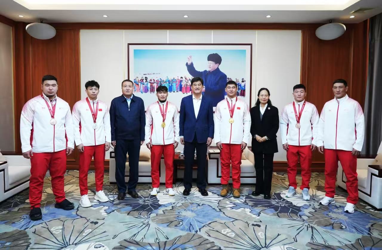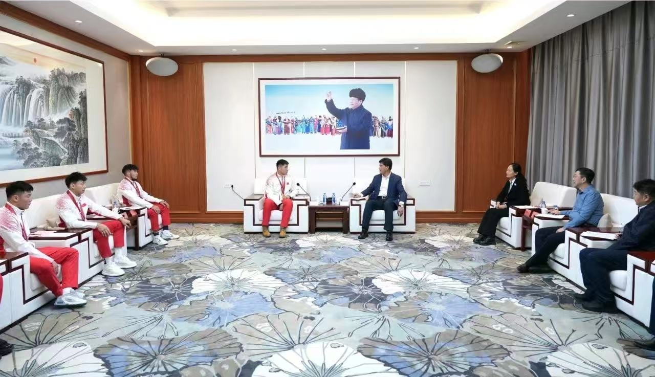 在第十五届全国运动会上,锡林郭勒盟籍运动员斩获2枚金牌、2枚银牌、2枚铜牌,充分展现了草原儿女顽强拼搏、奋勇争先的精神风貌。会见中,郭玉峰勉励大家珍惜荣誉、再接再厉,总结参赛经验,做好备战训练,努力取得更优异的成绩,为家乡增光添彩。