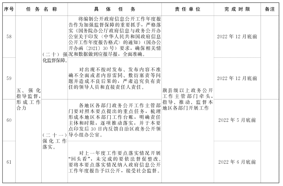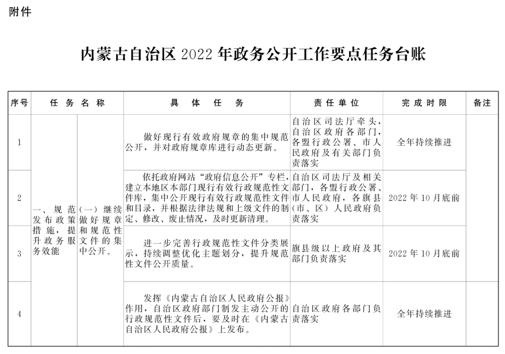 附件:内蒙古自治区2022年政务公开工作要点任务台账