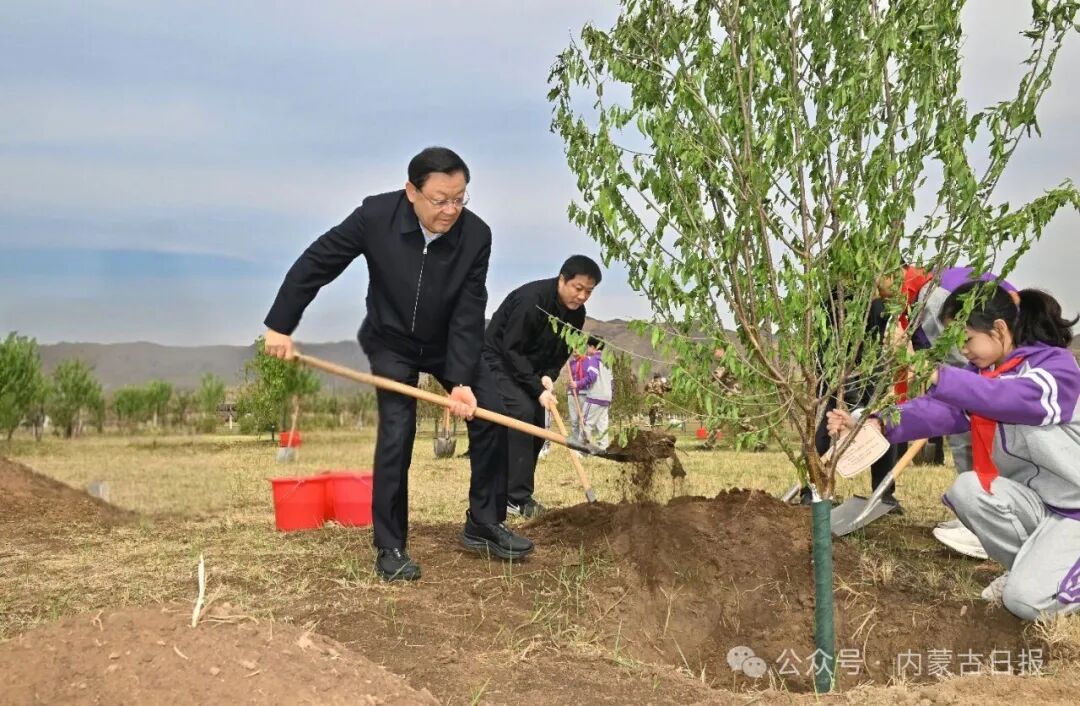 4月16日,自治区党委书记、人大常委会主任王伟中,自治区党委副书记、自治区人民政府主席包钢,自治区党委副书记、政法委书记时光辉等自治区省军级领导同志来到呼和浩特市新城区吉沙公园,与首府干部群众共同参加义务植树。